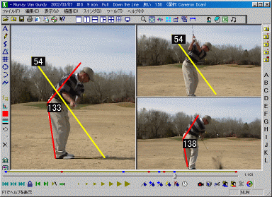 このスイング分析ソフトのすぐれたところは,OSから分離して作動するため,フリーズなどの誤作動が極めて少ないことです。ノートパソコン上でも簡単に画像の取り込みとスイング解析を行うことができます。各種のツールが付属しているので,コストパフォーマンスが極めて高いお薦めの製品です。低価格でありながらプロ向けの機能を備えたスイング分析ソフトと言えるでしょう。 主要機能 登録したプレーヤーごとに撮影ファイルを自動管理 パソコンに取り込んだ映像は登録プレーヤー名、日付等の情報を自動的に付けて保存されます。以前に撮影したスイングも簡単に呼び出せます。 複数カメラ対応版(オプション) 複数カメラ対応版では前、後、頭上などの映像を同時に取り込むことが可能です。 インパクト検知機能による自動撮影機能 インパクトの瞬間を音で検知して予め設定した前後の秒数を保存することが可能です。 画面に書いた線や円の内容を保存可能 画面上に作成した描画内容は全て保存できます。別のスイングで再利用も可能です。 映像の連続写真出力・CD書き込み・圧縮メール送信 スイングの特定場所に印をつけて、連続写真を作成できます。スイングをCDに書き込んだり、小さなサイズに圧縮してメールで送信する機能があります。 ダウンロードしてご自身のパソコンにインストールすると、7日間無料で利用できます。USGTF会員には特別価格の設定があります。詳細はメールでお問い合わせください |